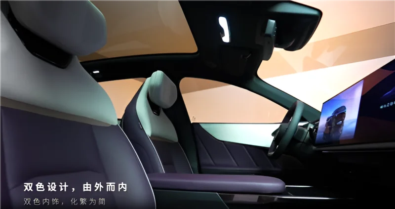 SUV’un iç mekanı çift tonlu renk şeması ve siyah yüzen tavan tasarımıyla modern bir görünüm sunuyor.