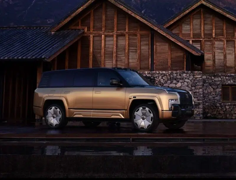Yangwang U8L, dış tasarımıyla da dikkat çekiyor. Siyah tavan, altın renkli dış boya, kalkan şeklindeki jantlar ve gizli kapı kolları lüks hissini artırıyor. Yeni modelde dış arka mızrak lastiği de kaldırılmış.